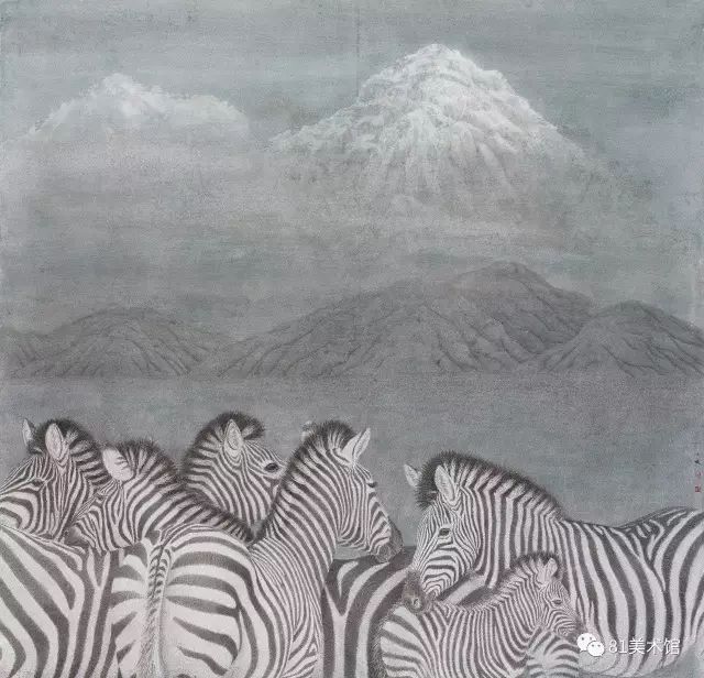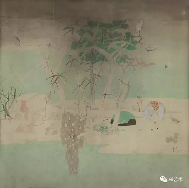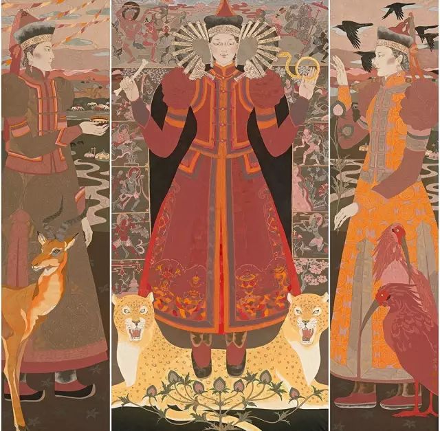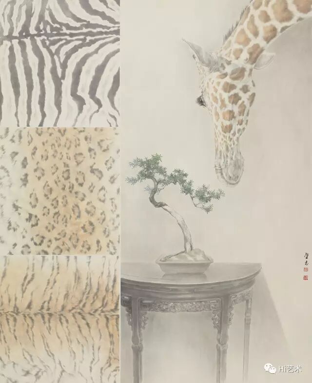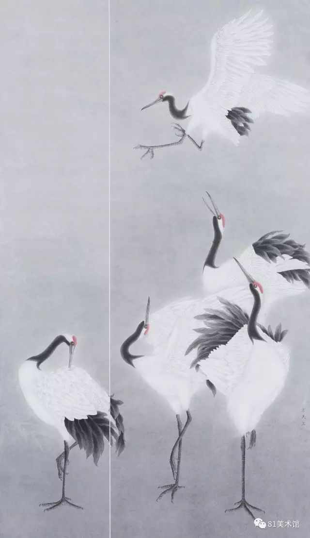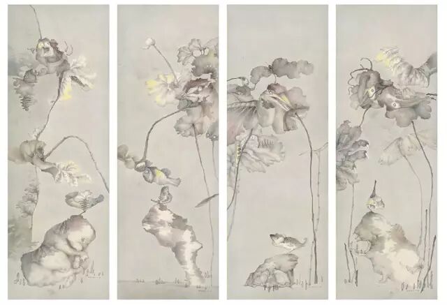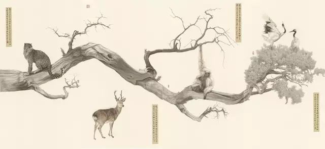《望春風-鶴:培風;豹:寓言;鹿:瞻爾;猴:負舟》 128×276厘米 紙本設色 秦艾 2016年