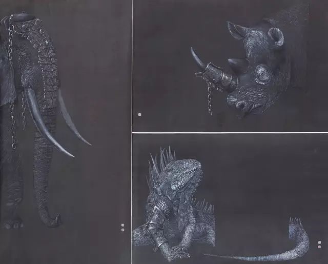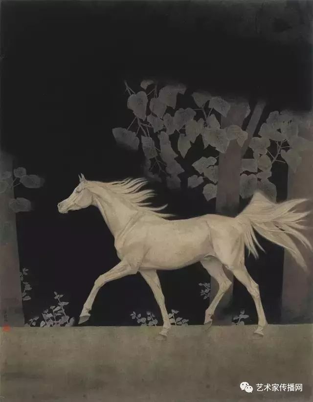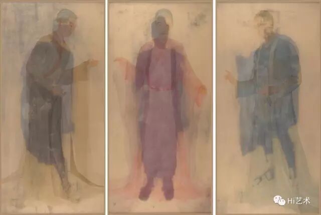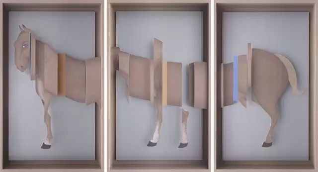 《白馬非馬》 155x95厘米x3 絹本繪畫裝置 馬靈麗 2015年