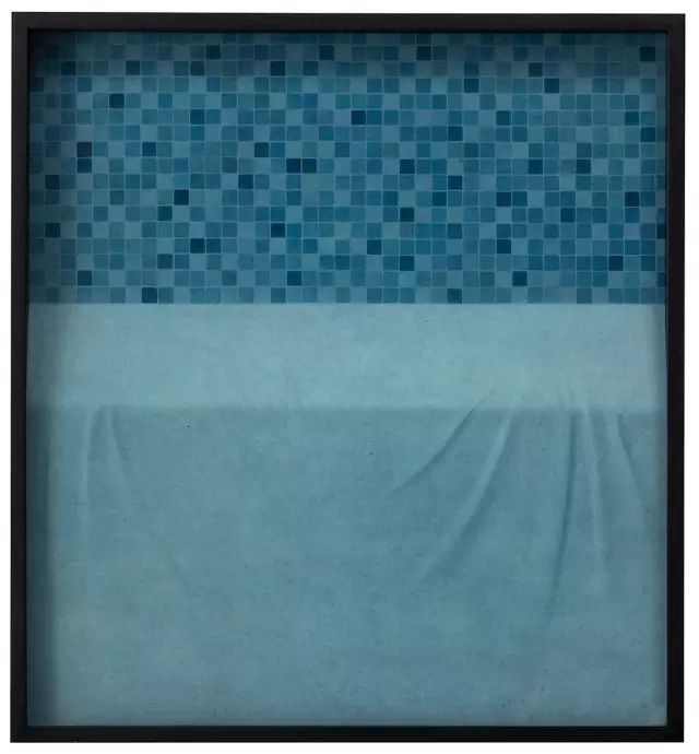 深藍馬賽克淺藍桌麵(a型) / 65×60厘米 / 紙本設色 木刻浮雕 / 杭春暉 / 2016年