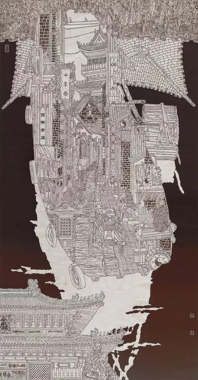 古鎮千年悠悠來 / 185×97厘米 / 紙本 / 欒劍 / 2014年