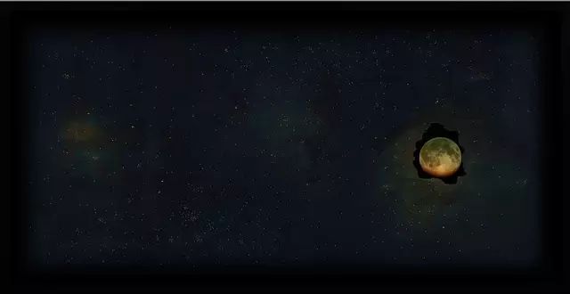 《析木之津3》(左正麵) 絹本影像(月球、土星、火星影像) 80x160x15cm 塗少輝 2016年