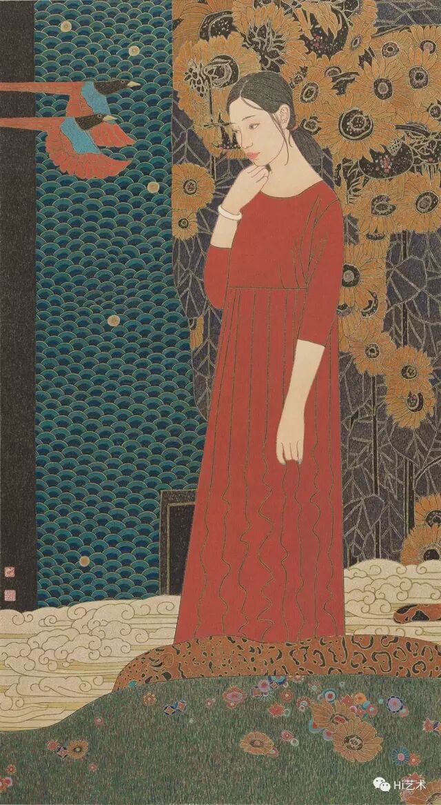《花牆·姑娘》 180×110cm 紙本設色 2016