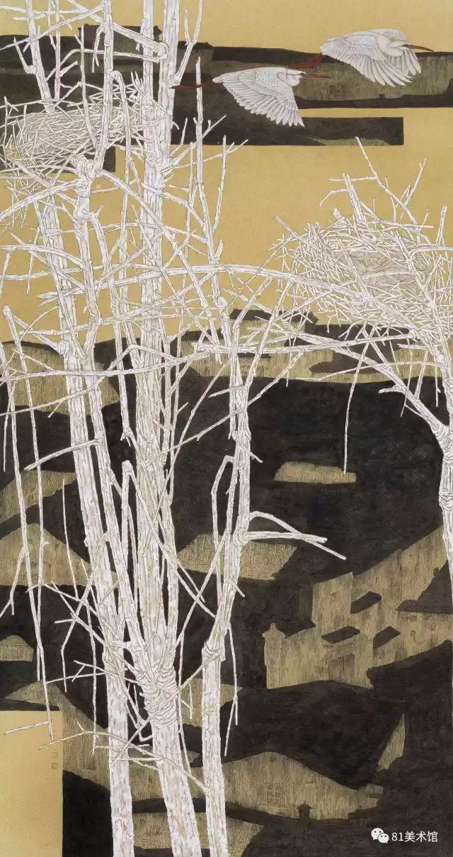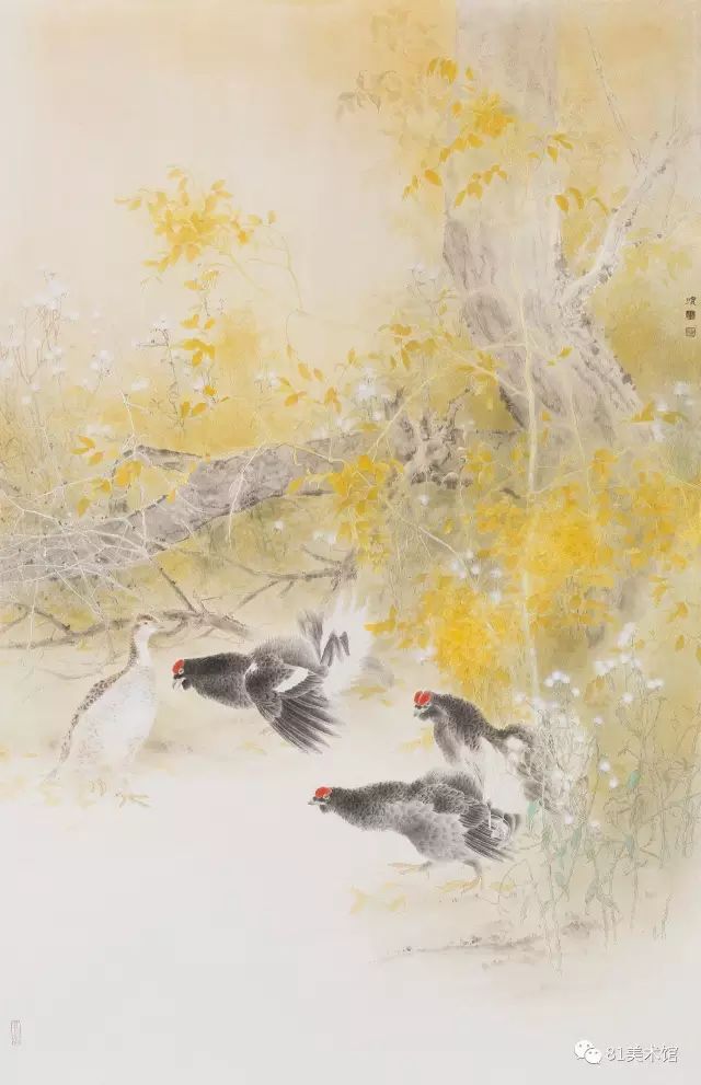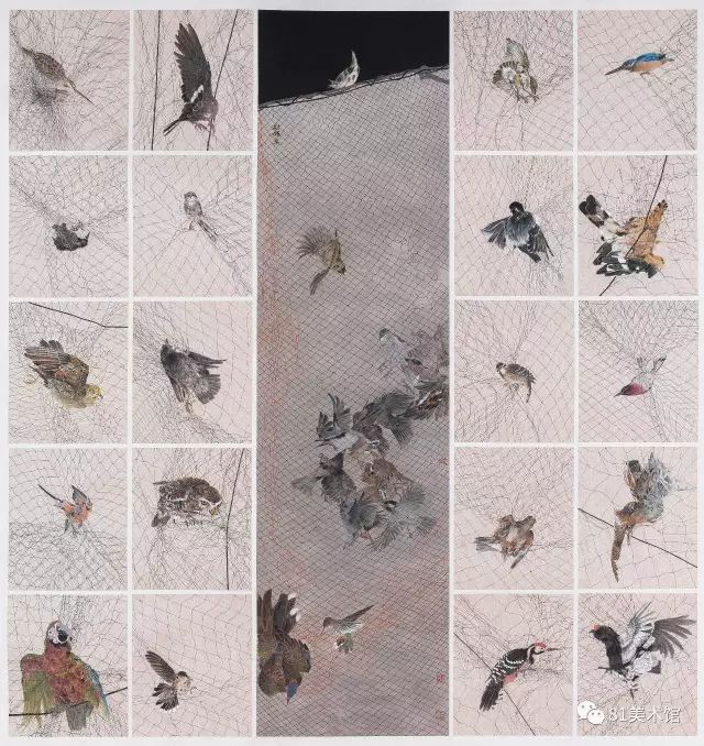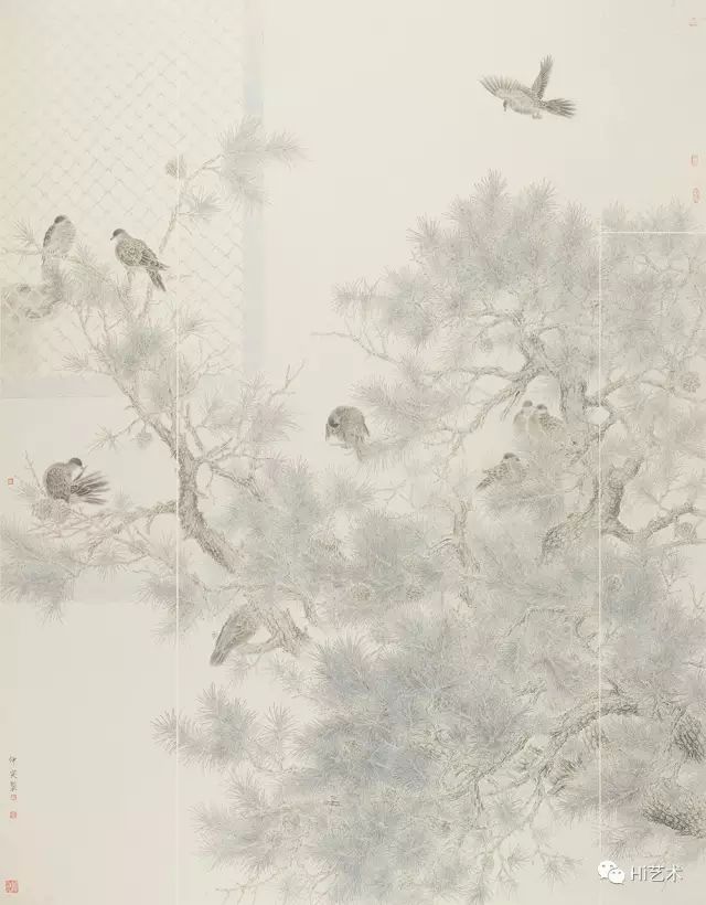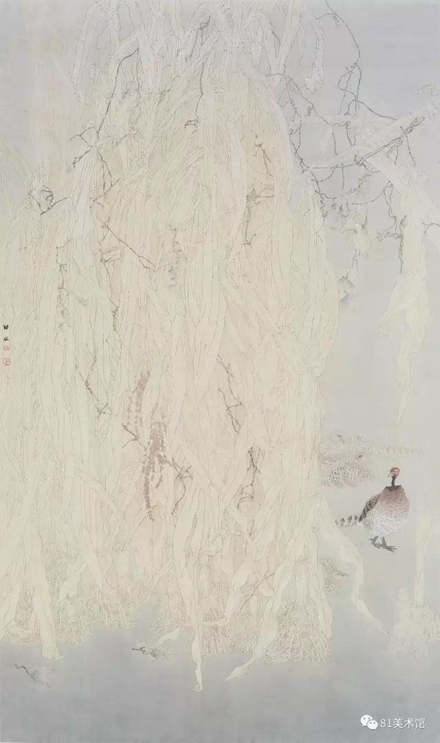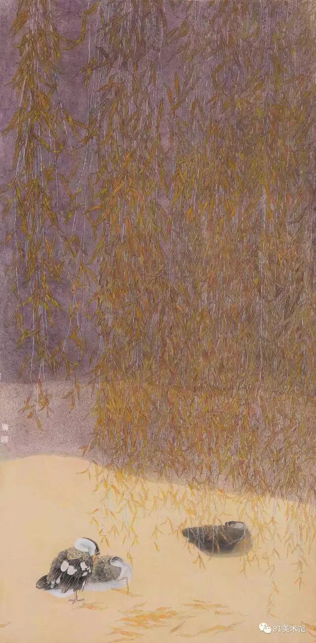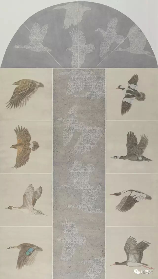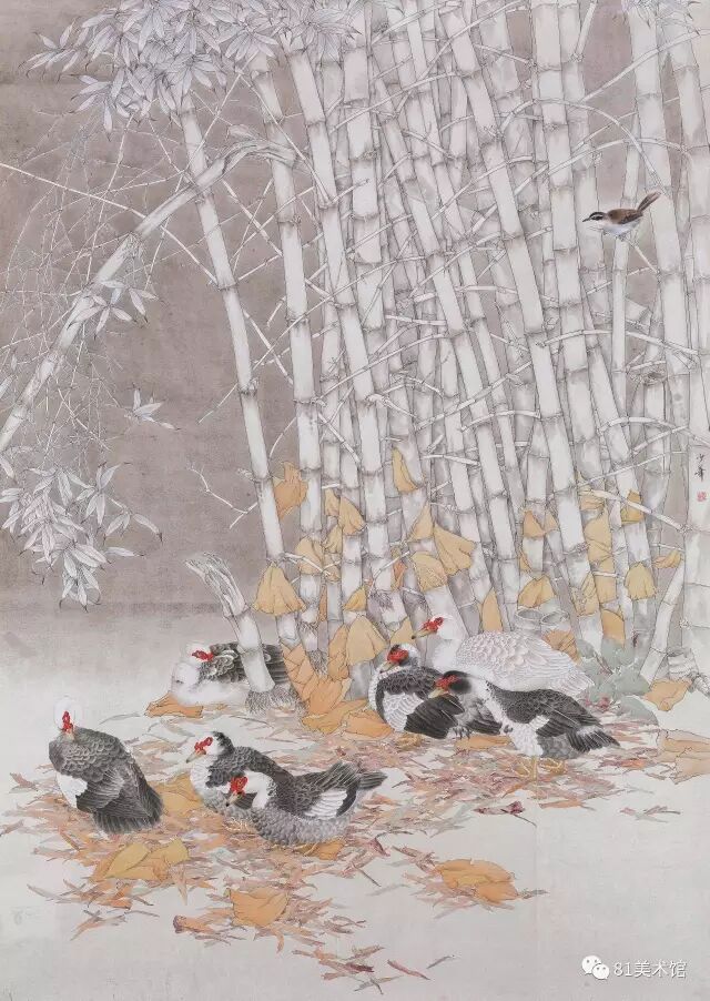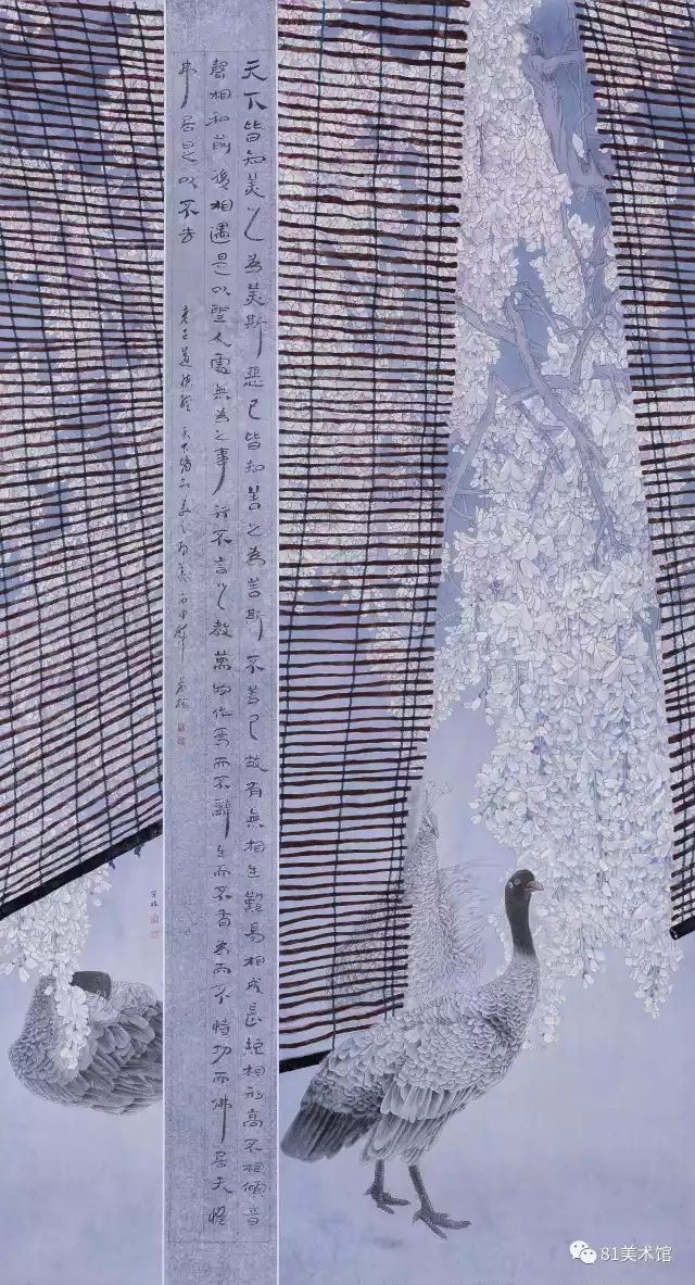 《寒林集禽圖》 228×138cm 紙本設色 2016