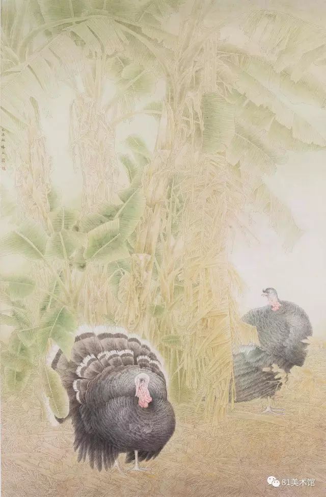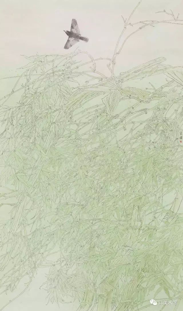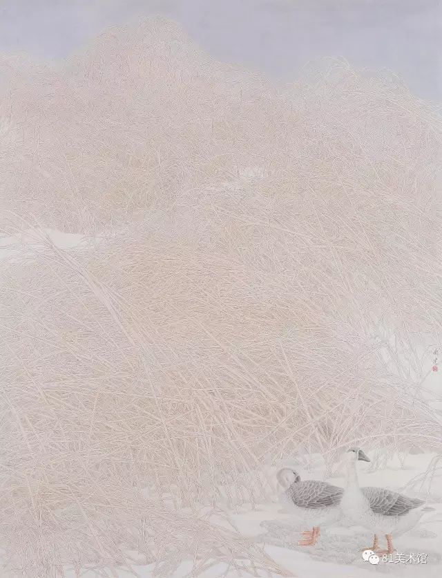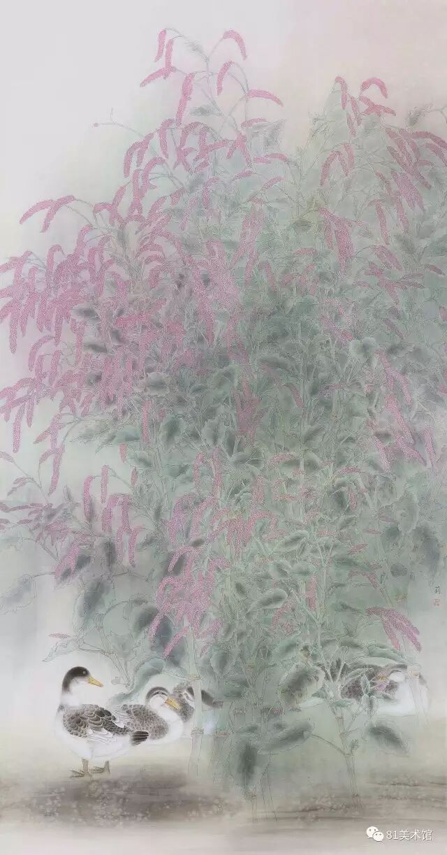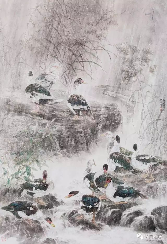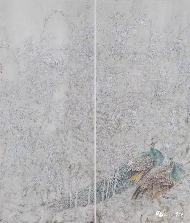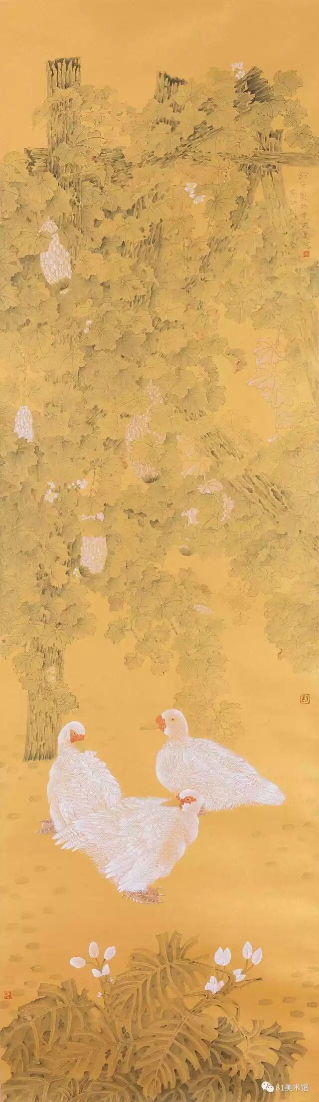 《寒林集禽圖》 228×138cm 紙本設色 2016