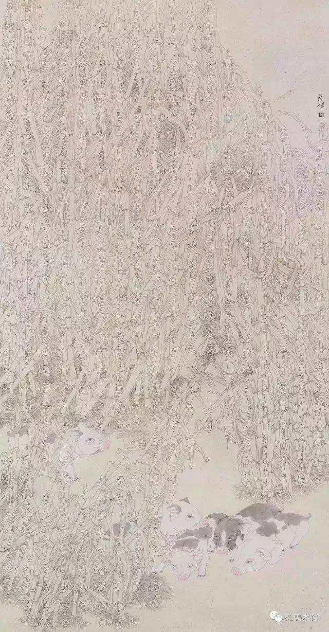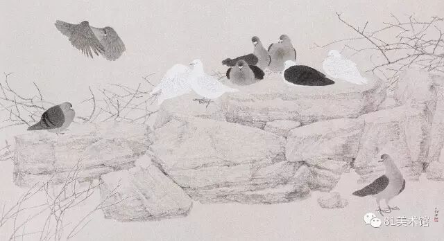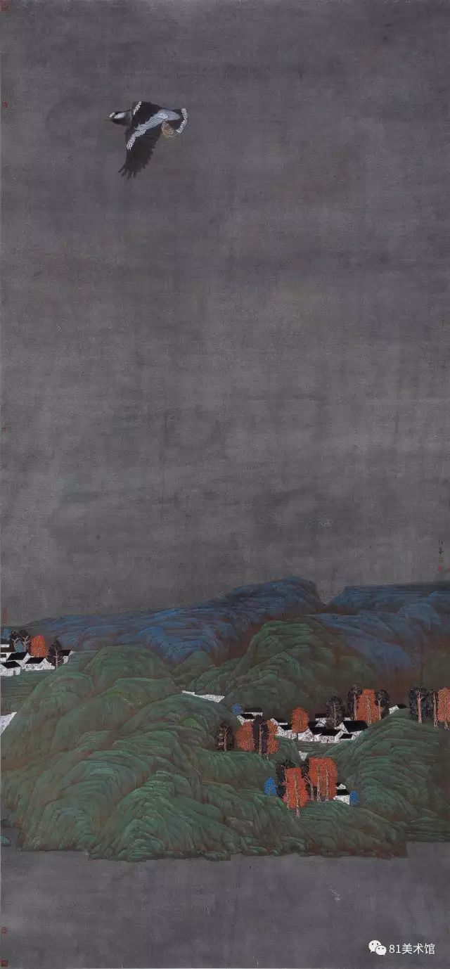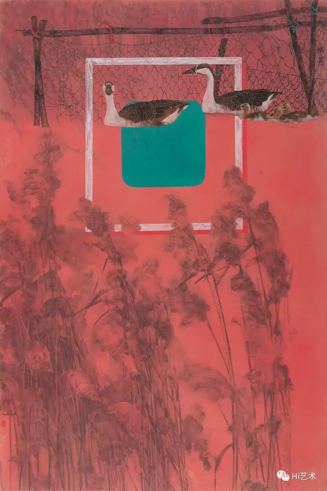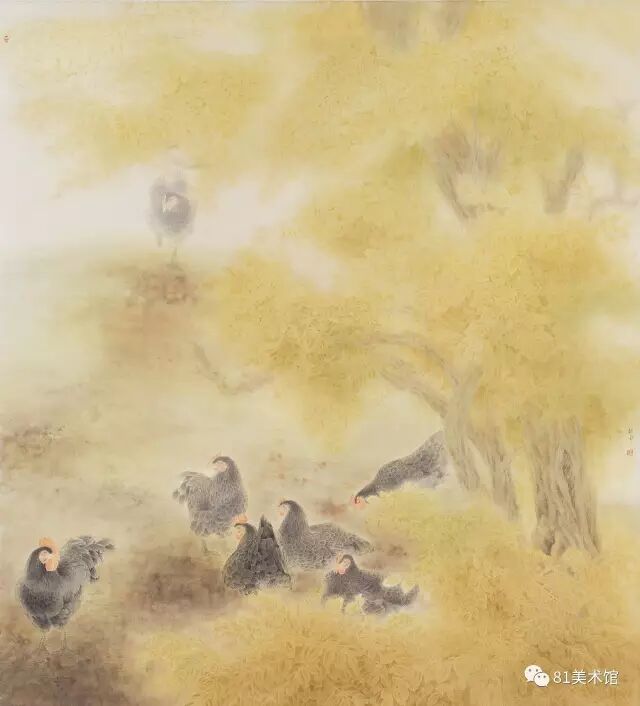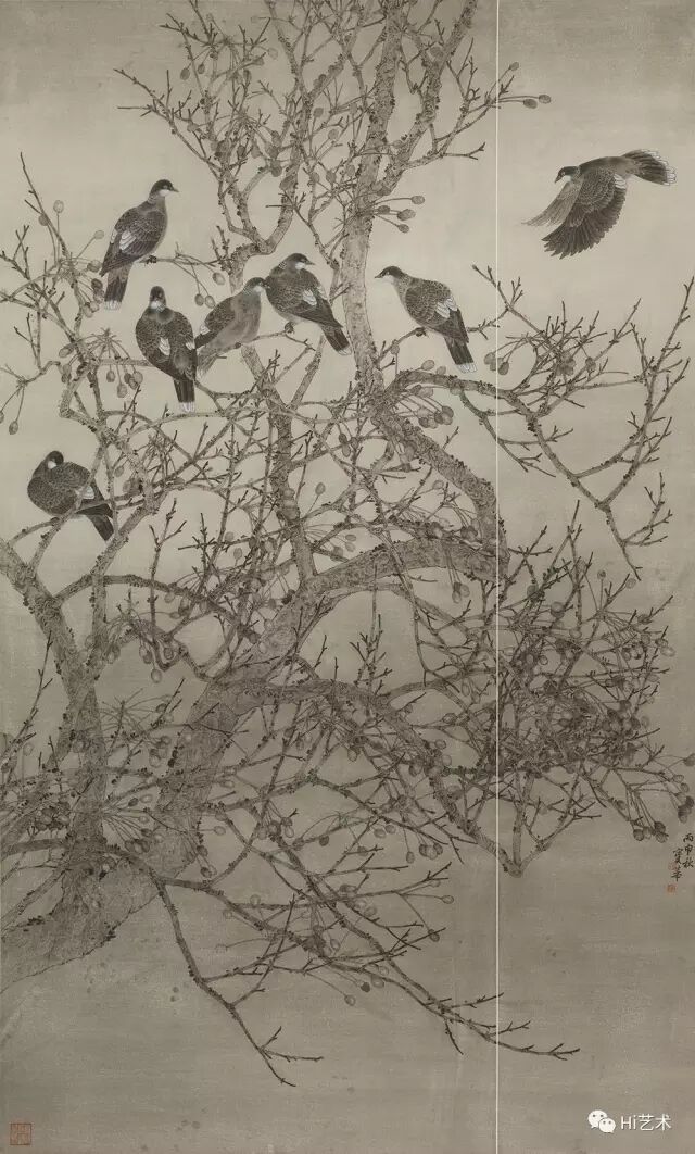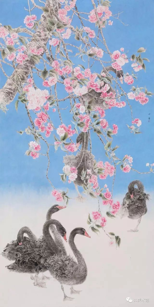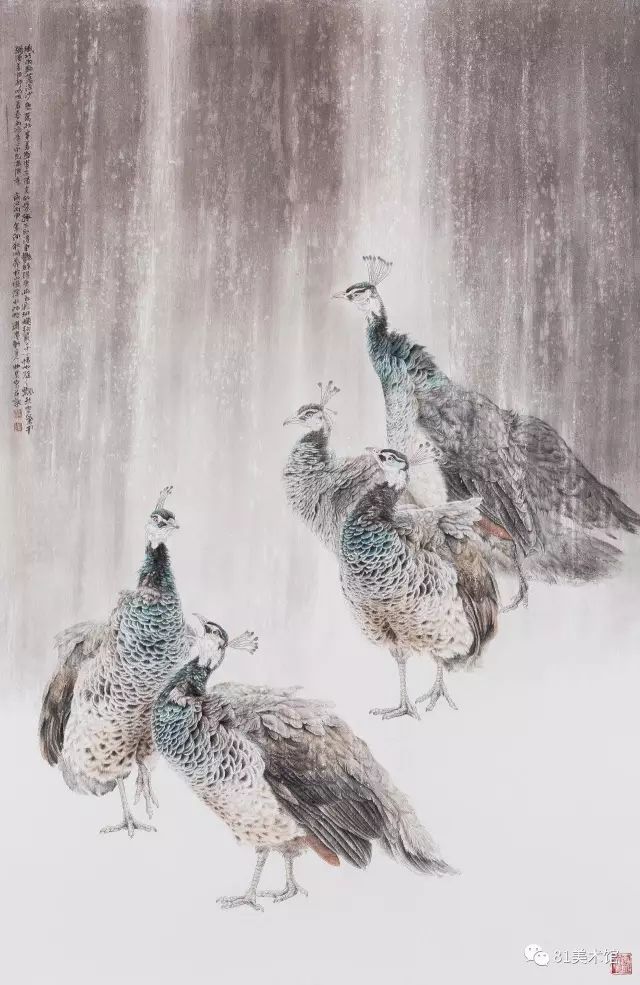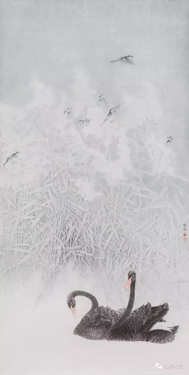 《寒林集禽圖》 228×138cm 紙本設色 2016