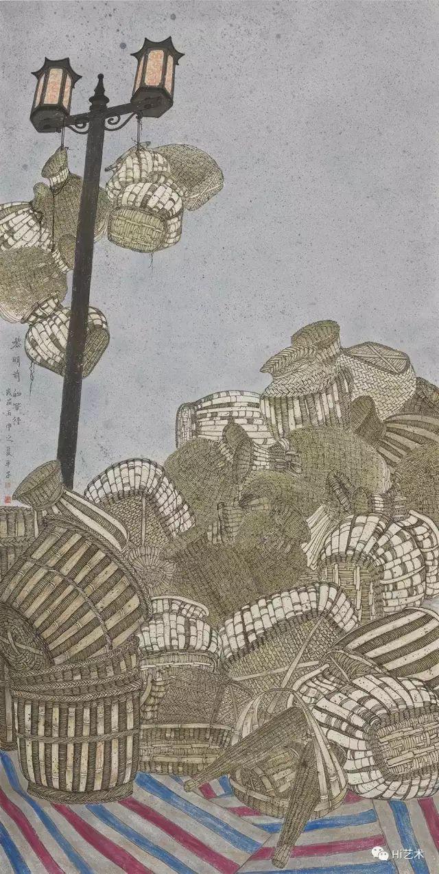 深巷夜語 / 140×230厘米 / 絹本設色 / 羅翔 / 2016年