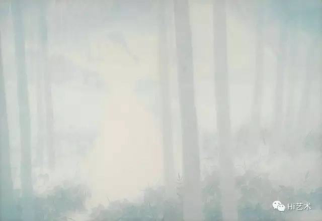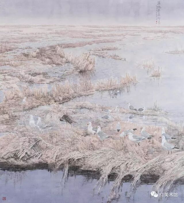 《巴音錫勒草原的芬芳》 天然礦物色,絹本 150x120cm 白樺 2016年