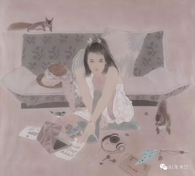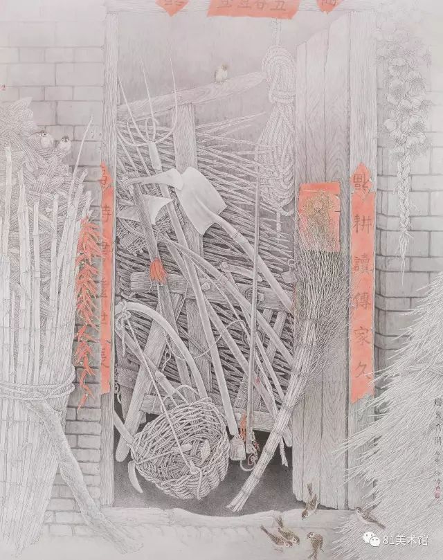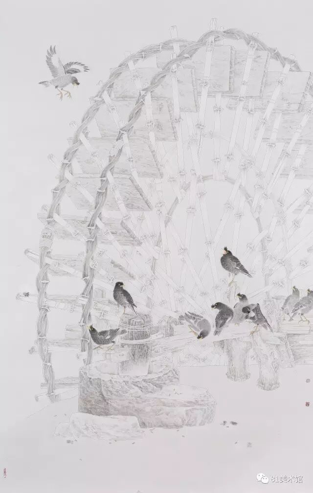 螺鈿 / 68×68厘米 / 紙本水墨設色 / 賀祖斌 / 2015年