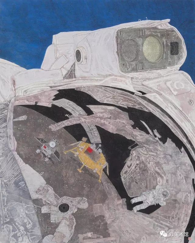 析木之津3(左正麵) / 80×160×15厘米 / 絹本 影像(月球、土星、火星影像) / 塗少輝 / 2016年