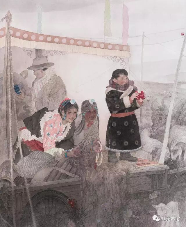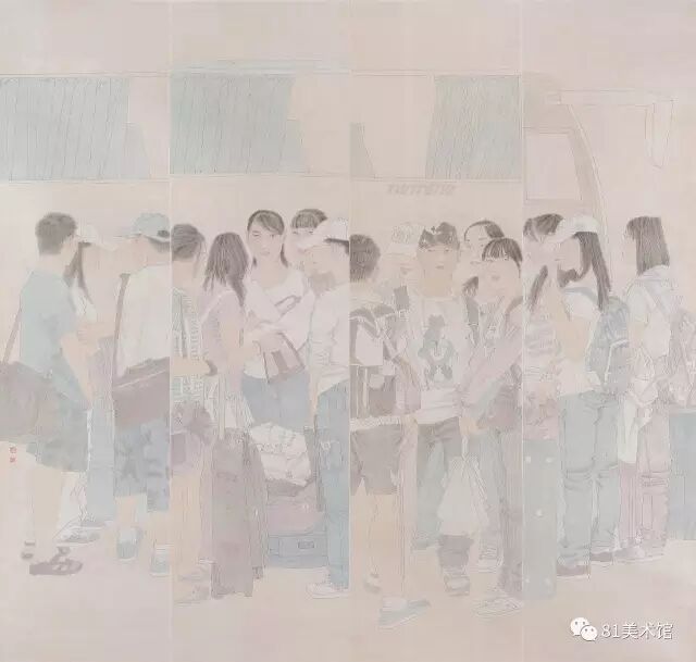 《放學》 /120×230厘米 / 紙本設色 / 李傳真 / 2016年