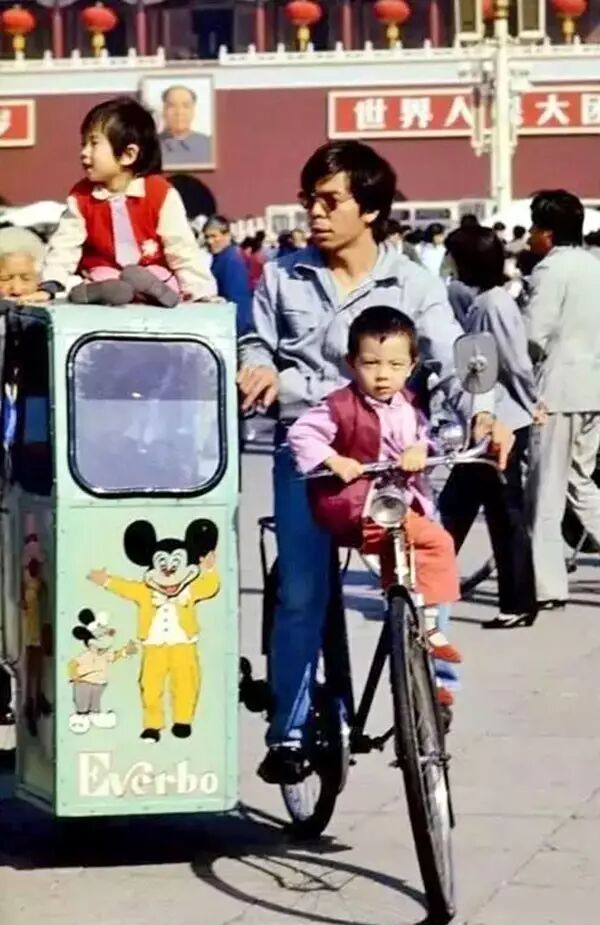 1980年代初,在天安門廣場上遊玩的父子。翁乃強/攝。