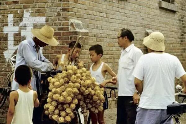 1965年,走街串戶的“背簍商店”在和顧客交易。翁乃強/攝。