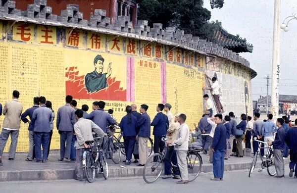 1967年,北京,北海團城牆上粘大字報。翁乃強/攝。