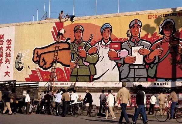 1966年,紅衛兵在長安街畫宣傳畫。翁乃強/攝。