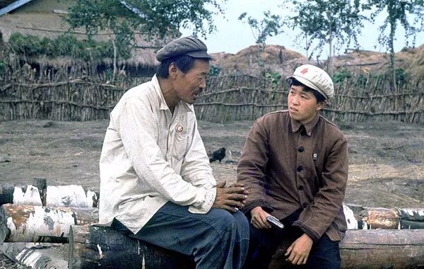 1968年,北大荒,知青與老農談心,接受再教育。翁乃強/攝。