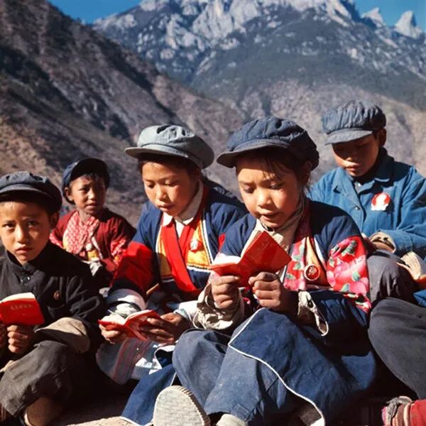 1970年,雲南中甸,新聯大隊少年閱讀毛主席語錄。翁乃強/攝。