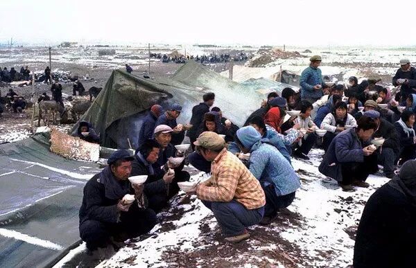 1972年,河南省輝縣,農民寒冬壘石造田露宿荒地。翁乃強/攝。