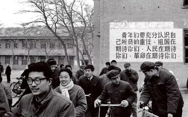 1968年,北大荒,知青歡呼最新指示遊行。翁乃強/攝。
