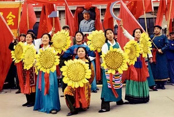 1969年,群眾慶祝黨的“九大”勝利閉幕,中央民族學院的師生表演節目。翁乃強/攝。