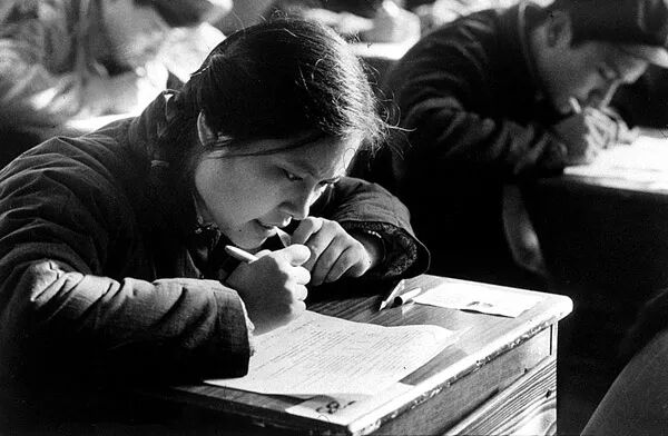 1977年,恢複高考,在考場上正在參加高考的考生。翁乃強/攝。