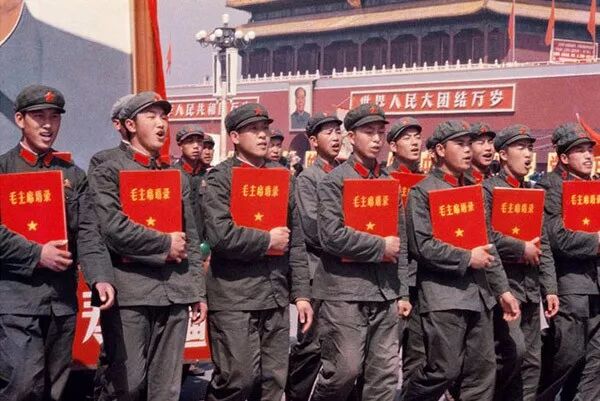 1966年,天安門,解放軍戰士捧著毛主席語錄遊行。翁乃強/攝。