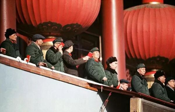 1966年10月1日,天安門城樓上參加檢閱的領導人。翁乃強/攝。