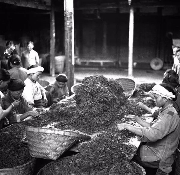 1939年6月,四川雅安第五茶場女工在檢茶。孫明經/攝。