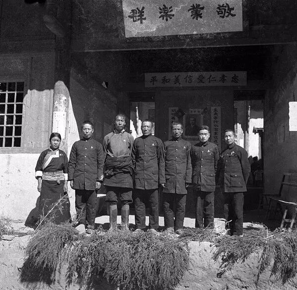 1939年11月,西康省,巴安(今巴塘縣)縣立小學藏漢教員合影。孫明經/攝。