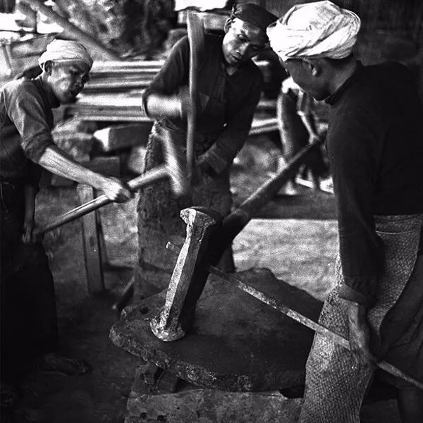 1938年4月,四川自貢,打造千米深井的鑽頭。孫明經/攝。