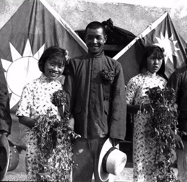 1937年7月18日,內蒙古五原縣河北鄉仰之村,農民中的優秀分子與北京女知識青年舉行集體婚禮,由段繩武將軍主婚。孫明經/攝。