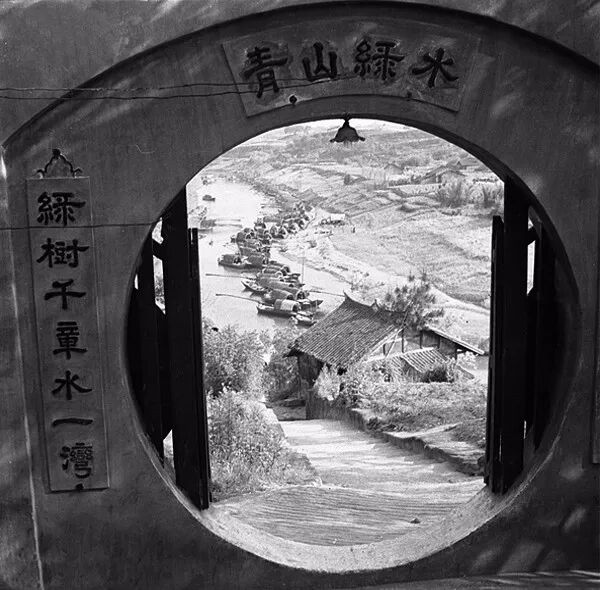 1938年4月,四川自貢,從富台山觀音閣遠望釜溪河上望不到頭的運鹽船。孫明經/攝。