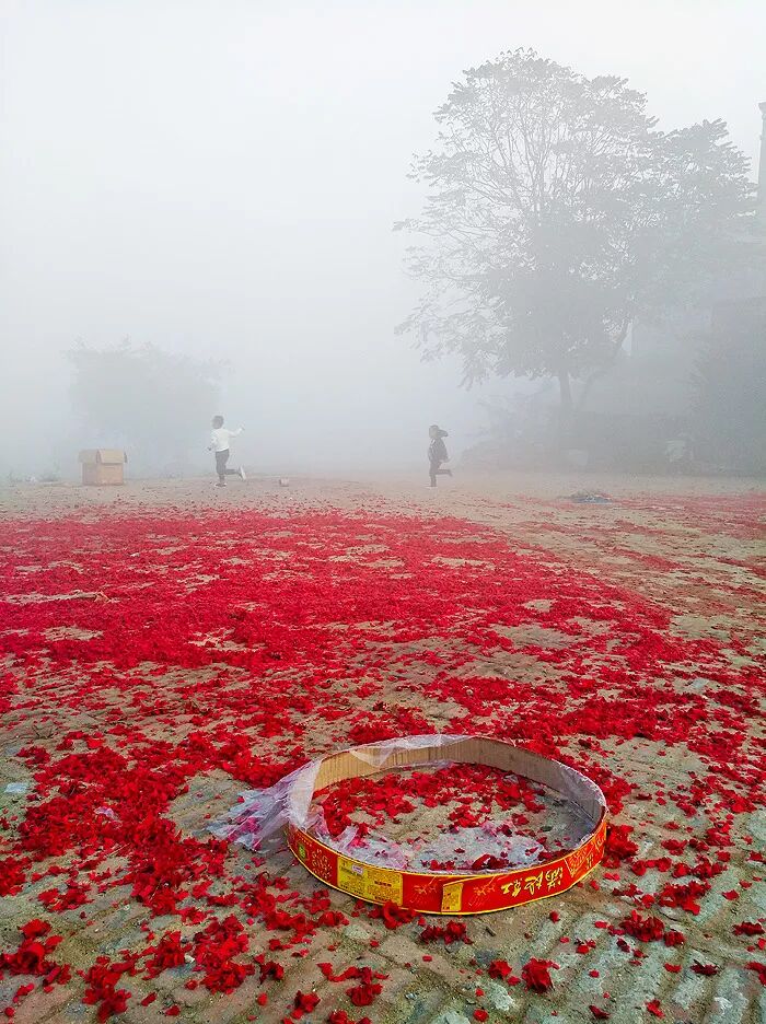 大年初一,徹夜的鞭炮聲,把村莊變成了迷霧森林。這是鄉下小孩最快樂的日子了。