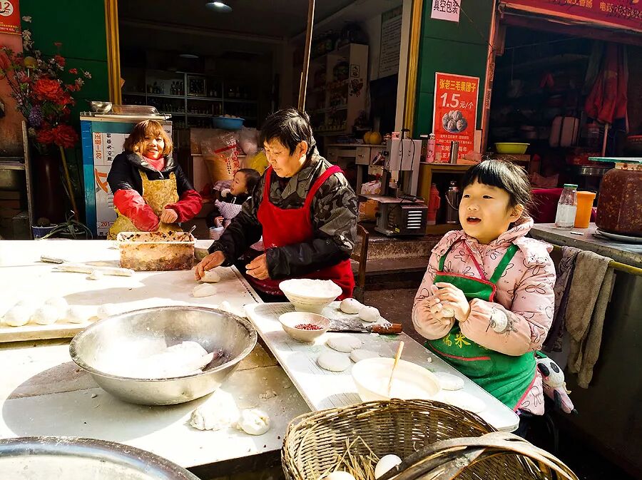 元宵節,陽光燦爛的宜昌老街,學包湯圓的小妹妹。