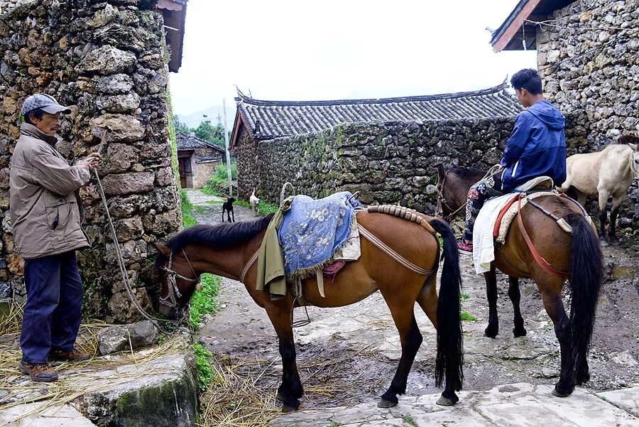 玉龍山下麗江城,玉湖村,趕馬的父子,這裏已經隱隱有了初秋的味道。