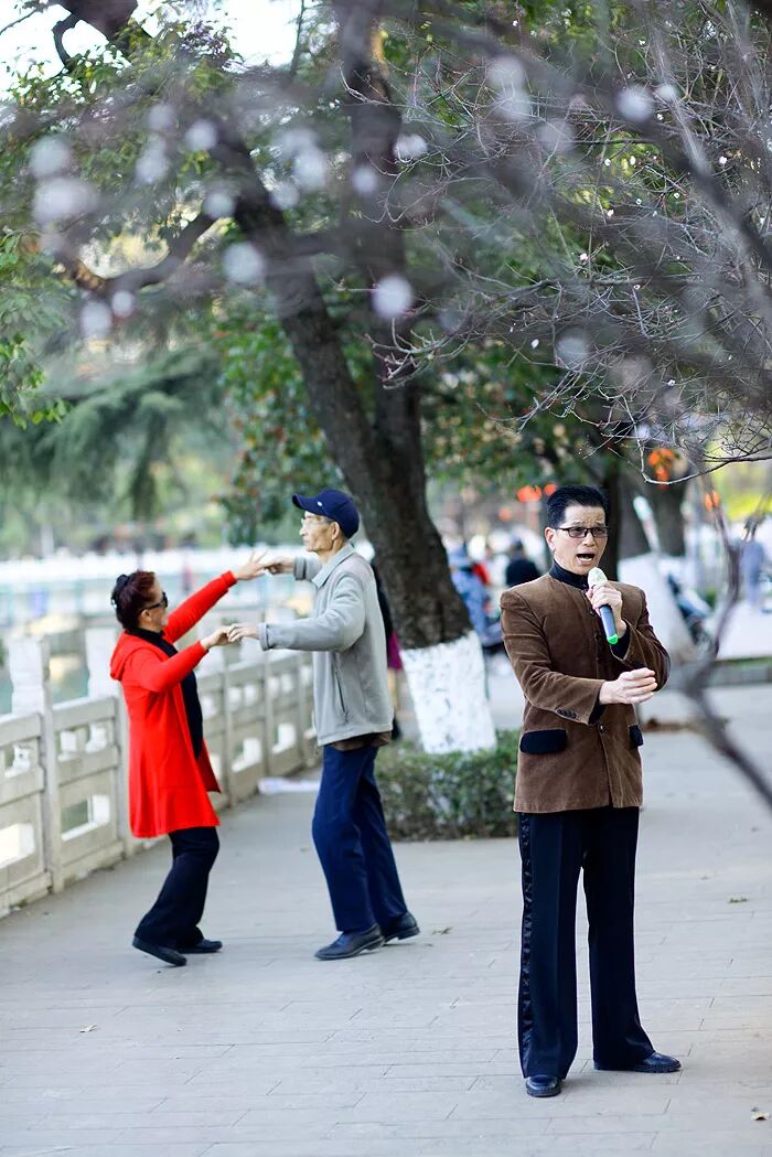 二月昆明,翠湖的黃昏。一本正經的大叔唱起了雲南民歌,一本正經的大爺大媽跳起了伴舞。