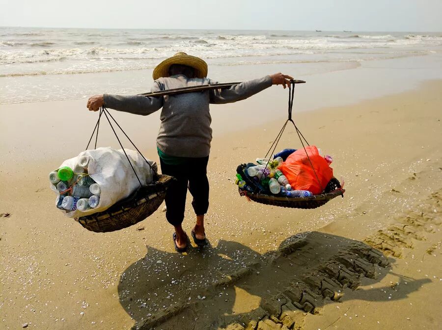 四月,家鄉湛江吳川的海邊,沙灘上撿垃圾為生的老人。