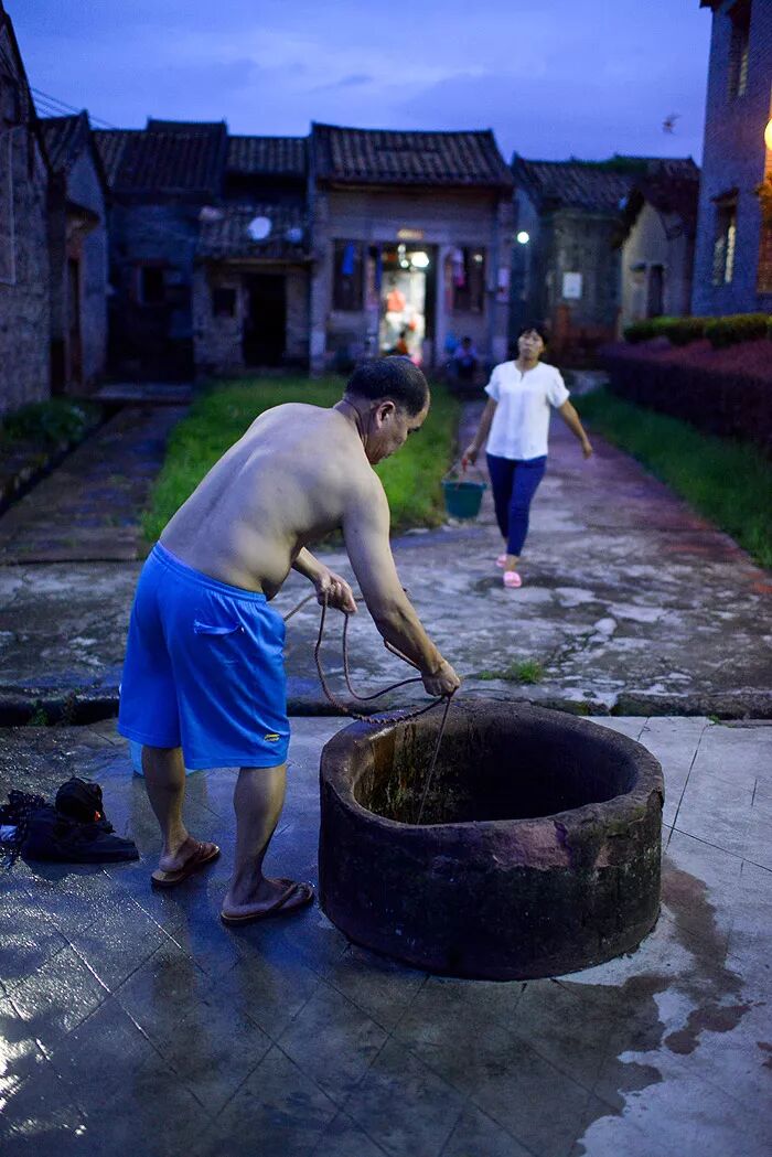黃昏的塘尾古村,村口的水井依舊發揮著取水的功用。