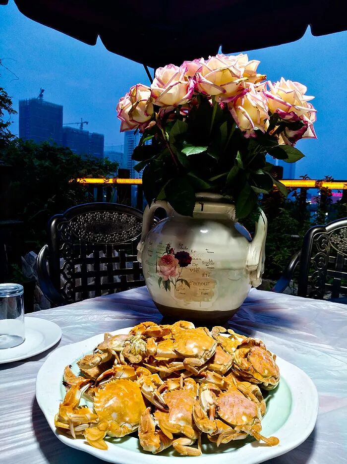 山東威海,朋友的無花果客棧天台花園上的簡陋晚餐,就隨便吃了點海鮮,蔬菜都沒上。