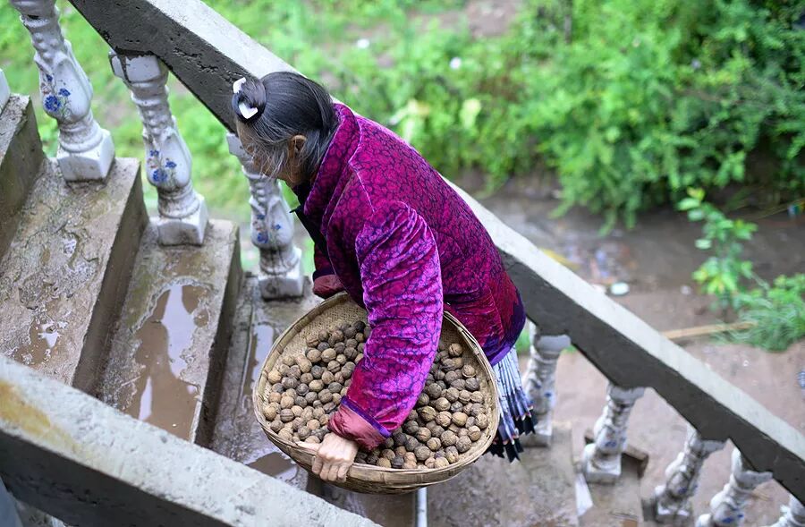 羅雲豔的奶奶,知道我們來了,把家裏所有的核桃,都搬出來塞到我們衣服兜裏。