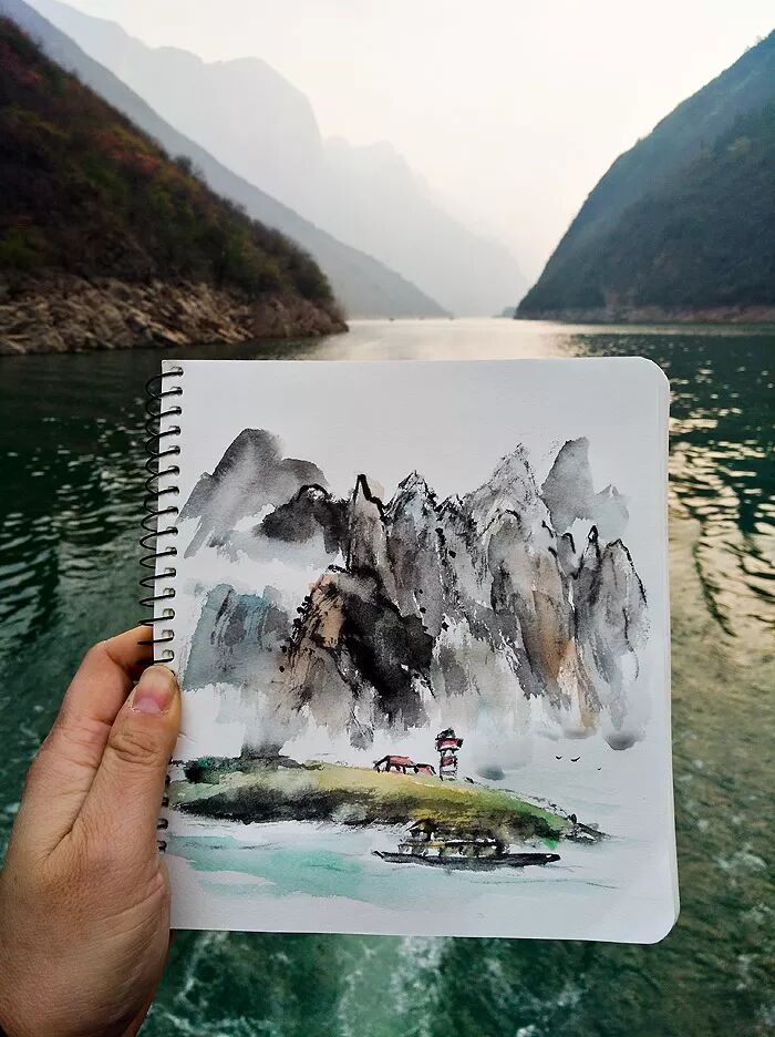 隻帶了很簡單的速寫本和顏料,但畫畫這事,首先得要有閑適的心情與無聊的時光,所以這次漫長的三峽乘船,頗有受益。