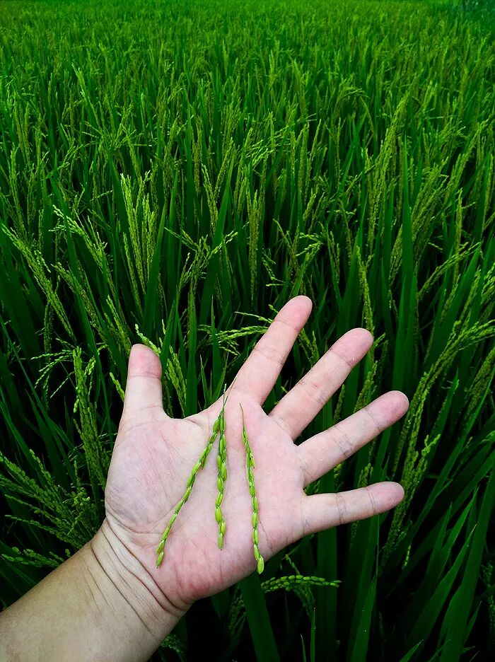 夏末,湖南常德,稻穀在灌漿,幾根掉落的稻穗拚成的掌紋。