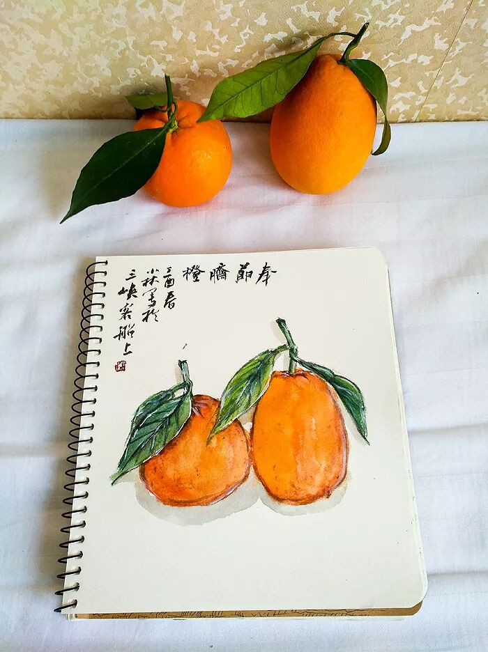 奉節帶上船的臍橙,吃剩了兩隻,成了這幅寫生。