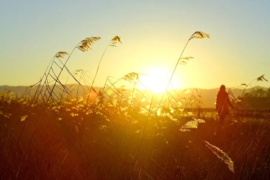一月,威寧草海,夕陽裏的蘆葦蕩。