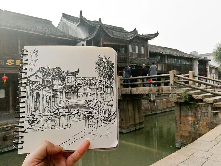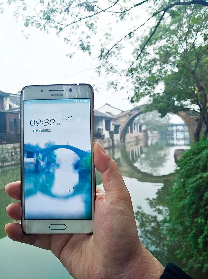 今年為華為手機設計了幾款手機壁紙,這張煙雨江南圖,就是拍自南潯。特意跑到了同一座橋下,拍下一張對照圖。