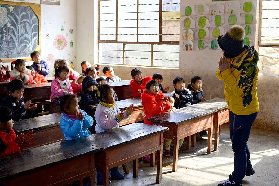 這次,有和孩子們的互動交流,有新的課桌和過年新衣服,有童話書和作業本。威寧的冬天異常寒冷,大家還籌備了每位老師和孩子每人一個保溫杯,不是名牌,但保溫效果還是很不錯的。兩位陌生的姑娘,從重慶自駕車七八個小時過來,為孩子們上了一節音樂課。