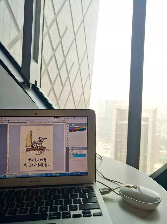 九月,北京,中央電視台新館樓頂,邊開會邊畫漫畫。