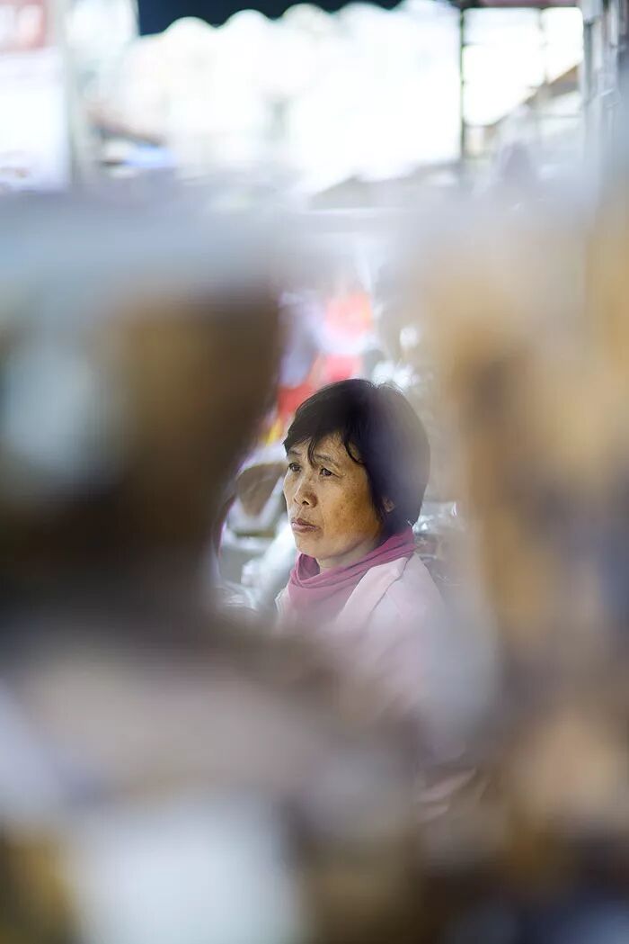 廣州清平路藥材湯料批發市場,發呆的店主阿姨。