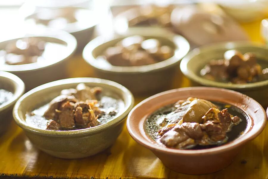 蒸好的雞,還要擺上雞血,上麵再撒幾粒粗鹽,小時候,這是最熱愛的美食。