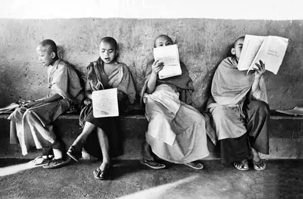 1991年,雲南景洪,小和尚讀經書。吳家林/攝。