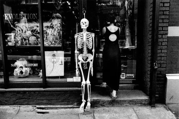 1997年,紐約,店鋪門前的骷髏模型。吳家林/攝。